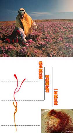 番红花具有活血化瘀、凉血解毒、解郁安神、健胃等功效,为名贵的传统妇科产品。最顶级的番红花来自伊朗,不仅在于种植范围狭窄,更重要的它仅仅摘取雌花蕊顶端部分。每朵花中有仅有3个雌蕊,为了保持药物的纯正与新鲜,新采摘的番红花必须在当天,用手工将花蕊分离。雌蕊在经过剥离、干燥等加工工序后就是番红花。而入药部分,花蕊越靠上颜色越深,生物活性越高,顶尖部分最好,其有效成分是普通藏红花的7—10倍。
